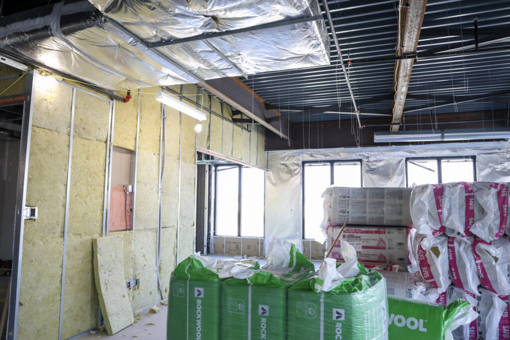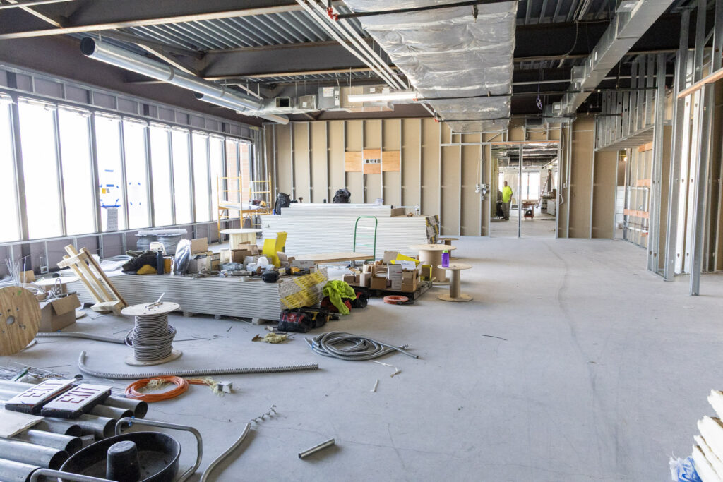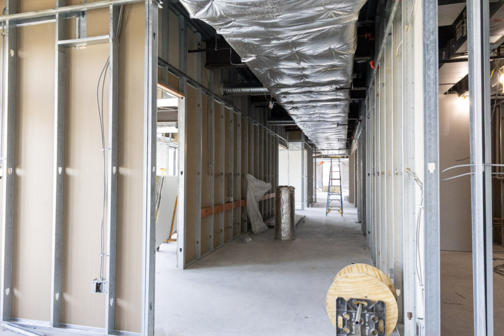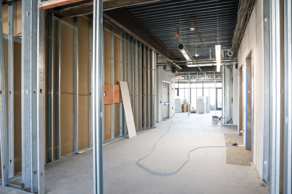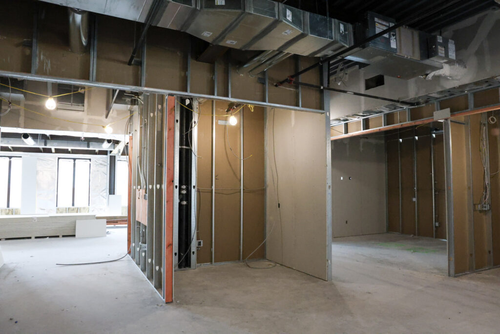 During this construction phase, Summit Construction Inc.’s scope of work includes rough carpentry, installation of doors, frames, and hardware, as well as gypsum drywall and acoustical ceiling systems in support of the interior build-out.